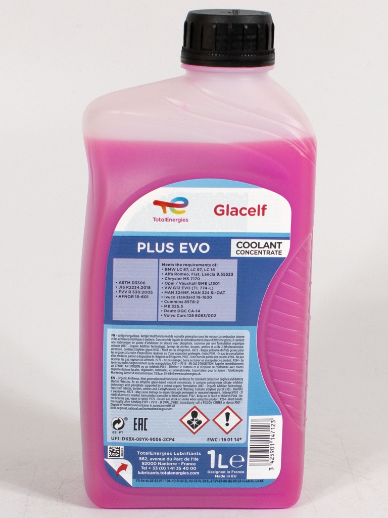 Glacelf Plus Evo — универсальная и многофункциональная охлаждающая жидкость, разработанная для работы в самых экстремальных условиях двигателей внутреннего сгорания и электромобилей, обеспечивая устойчивость к жесткой воде и окислению.