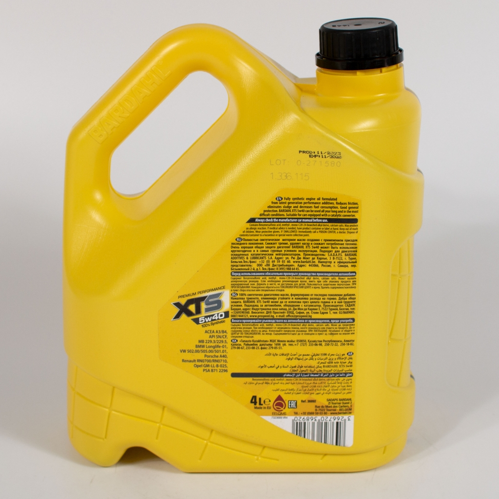 Полностью синтетическое моторное масло BARDAHL XTS 5W40,  произведенное с использованием добавок увеличения производительности последнего поколения. Снижает трение, устраняет осадок и уменьшает расход топлива. Обладает отличными защитными свойствами, не теряя их даже при самых тяжелых условиях эксплуатации.
