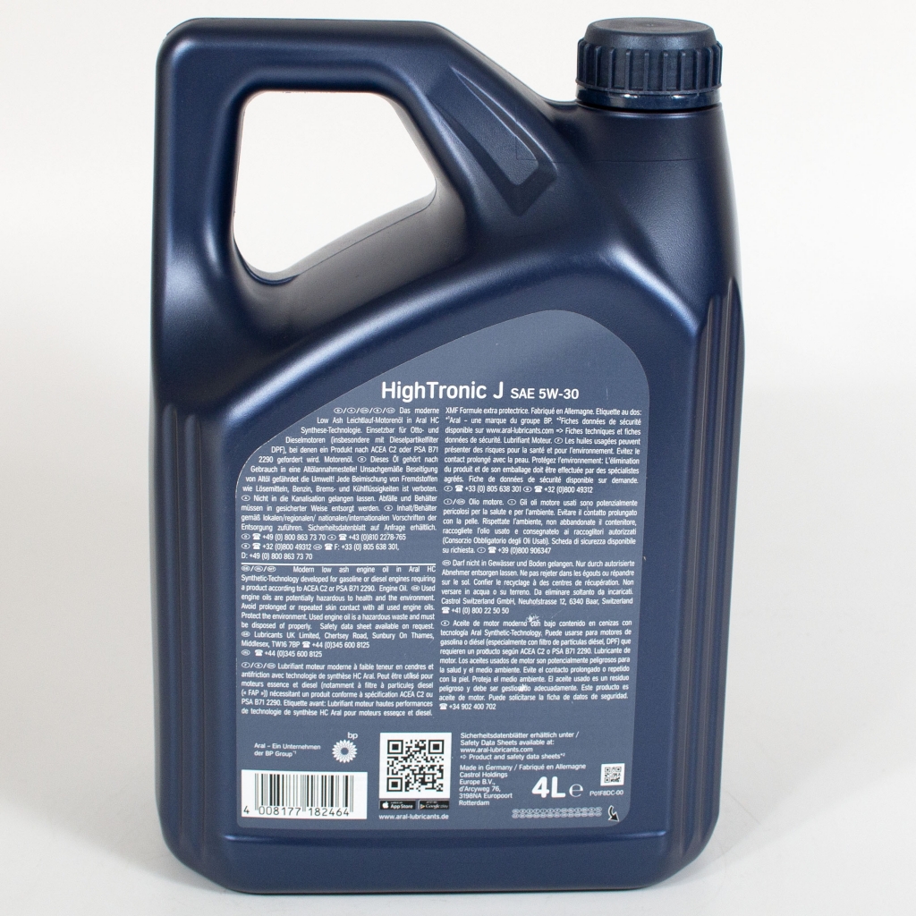Aral HighTronic J обладает хорошей высокотемпературной стойкостью, отличными низкотемпературными характеристиками, обеспечивает снижение расхода топлива, надежную защиту двигателя от износа и его чистоту. Может применяться при удлиненных межсервисных интервалах в соответствии с предписаниями производителя автомобиля. Сниженная зольность гарантирует долгий срок службы сажевых фильтров.