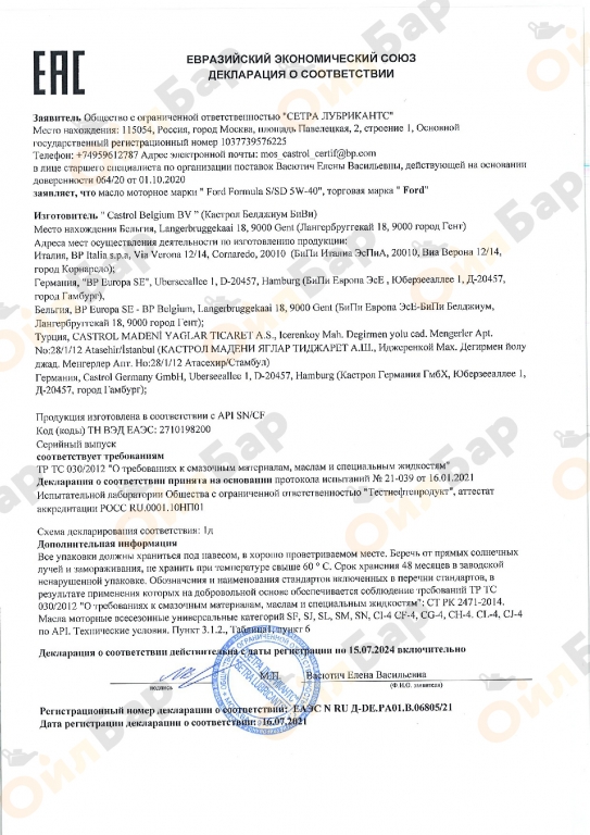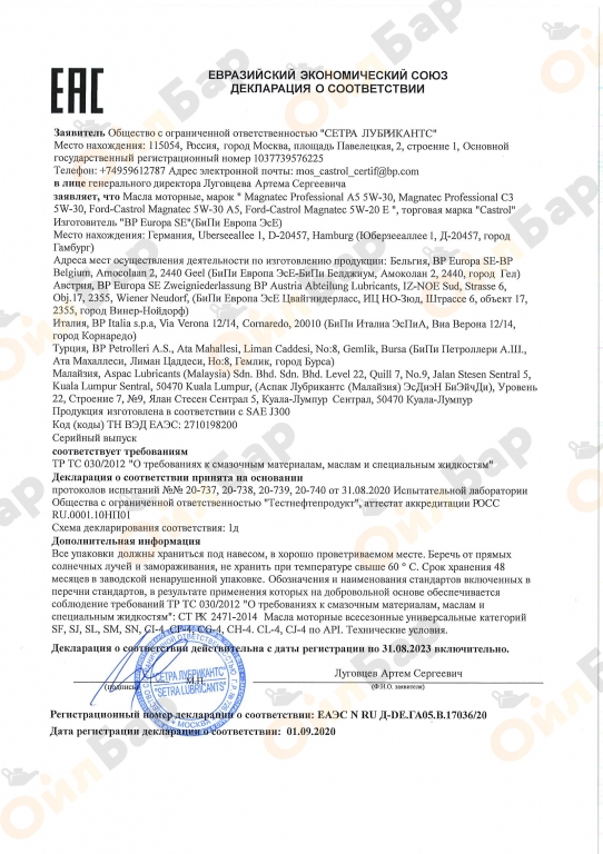 Приобрести масло Castrol Magnatec Prof Ford E 5w-20 от официального производителя можно в магазине ОйлБар по самой выгодной цене!
