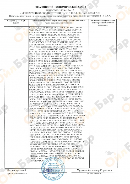 Syn-X 3000 – синтетическое моторное масло премиального качества, подходящее для всех легковых автомобилей, выпущенных после 1980 года. Масло отвечает требованиям новейшего стандарта API SN/CF. Формула Syn-X 3000 на основе синтетического базового масла обеспечивает улучшенные рабочие характеристики, повышенный контроль износа, широкий диапазон рабочих температур, минимизацию образования шлама при низкой температуре и лака при высокотемпературном окислении.