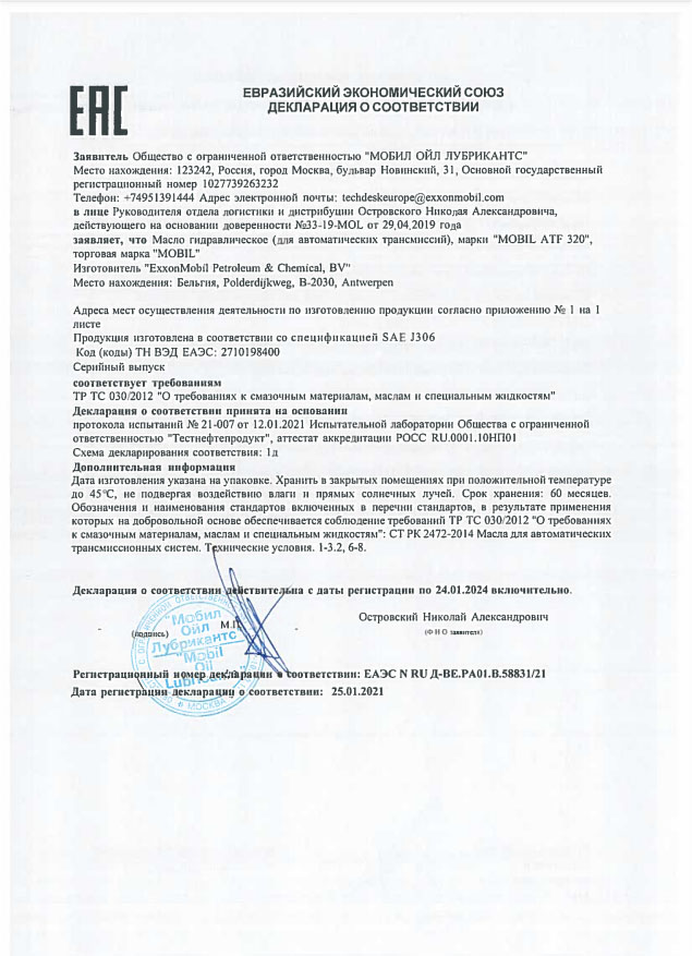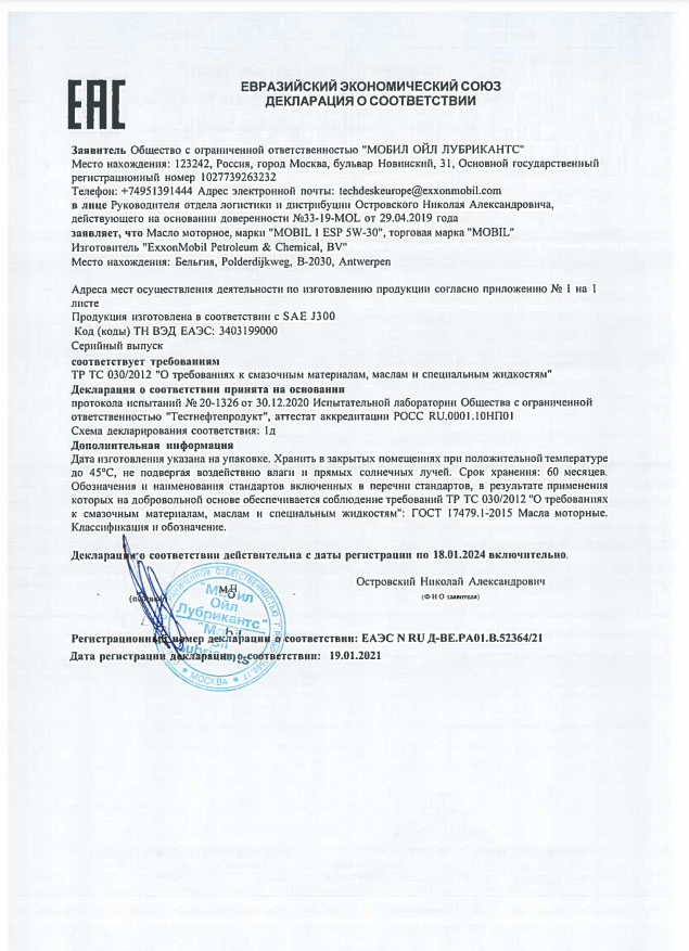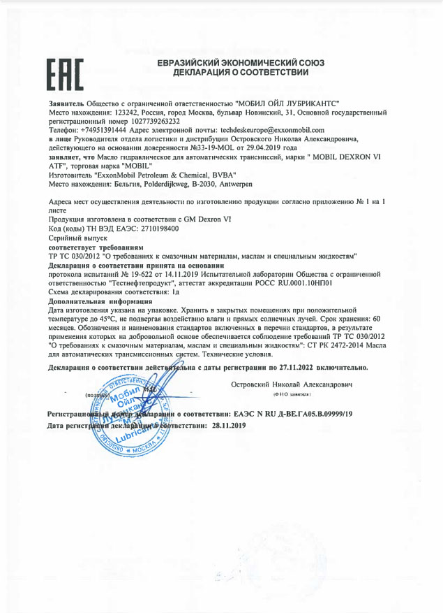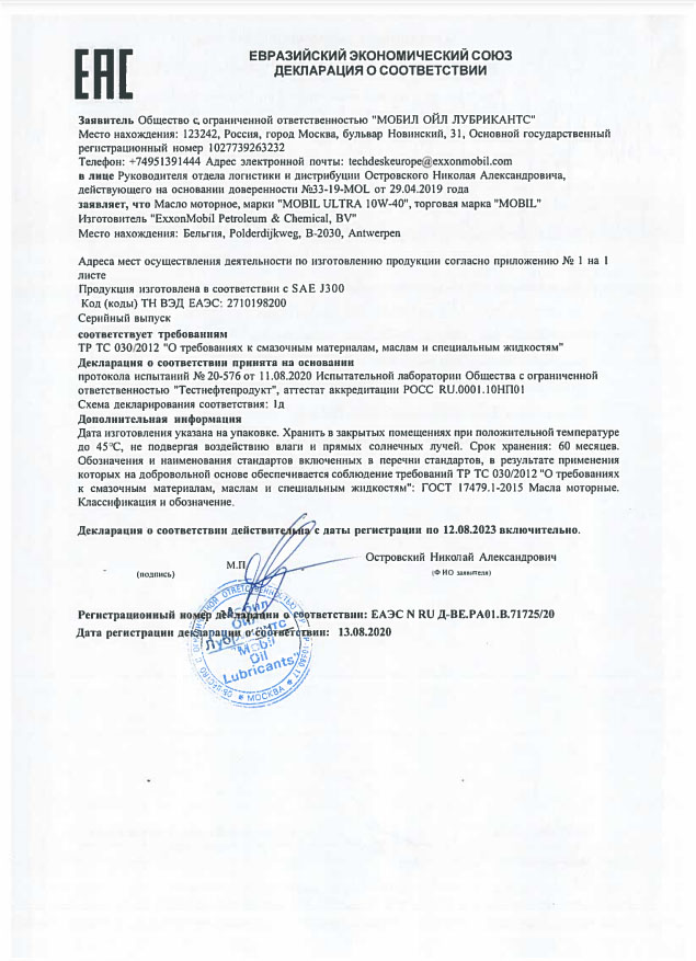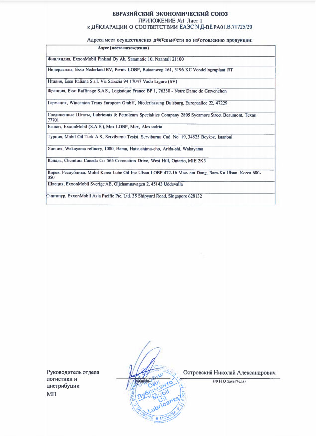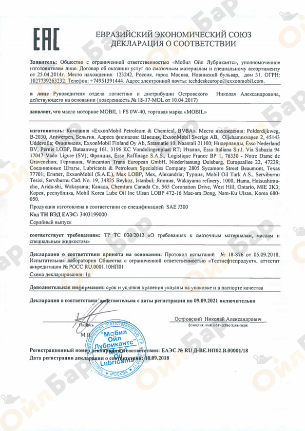 Mobil 1 0W-20 превосходит следующие требования или соответствует им:
