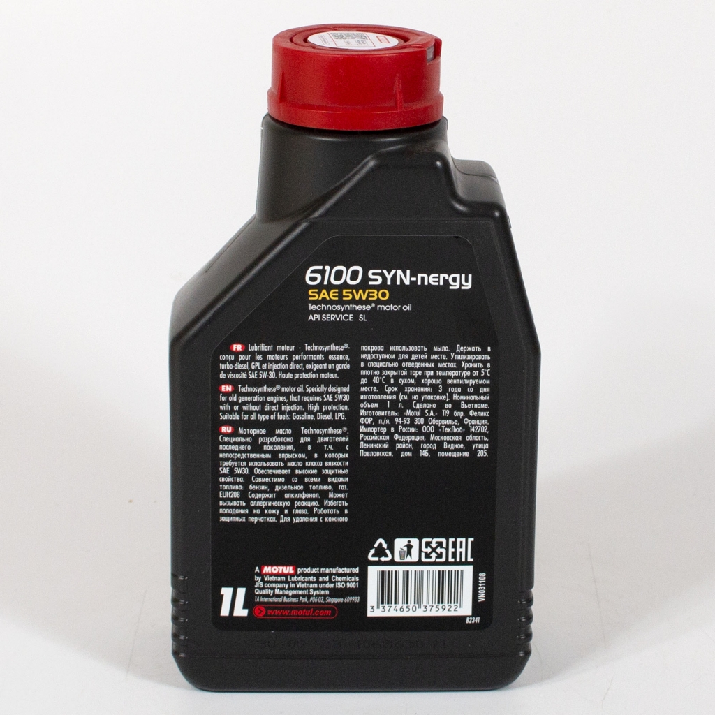 Главная / Моторные масла / Моторное масло Motul 6100 SYN-NERGY 5W-30, 1л