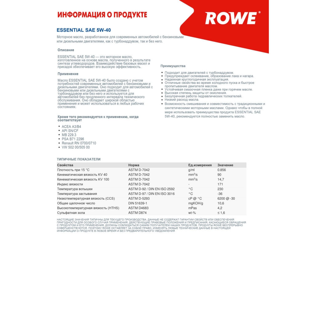 Моторное масло ROWE ESSENTIAL SAE 5W-40, 5л