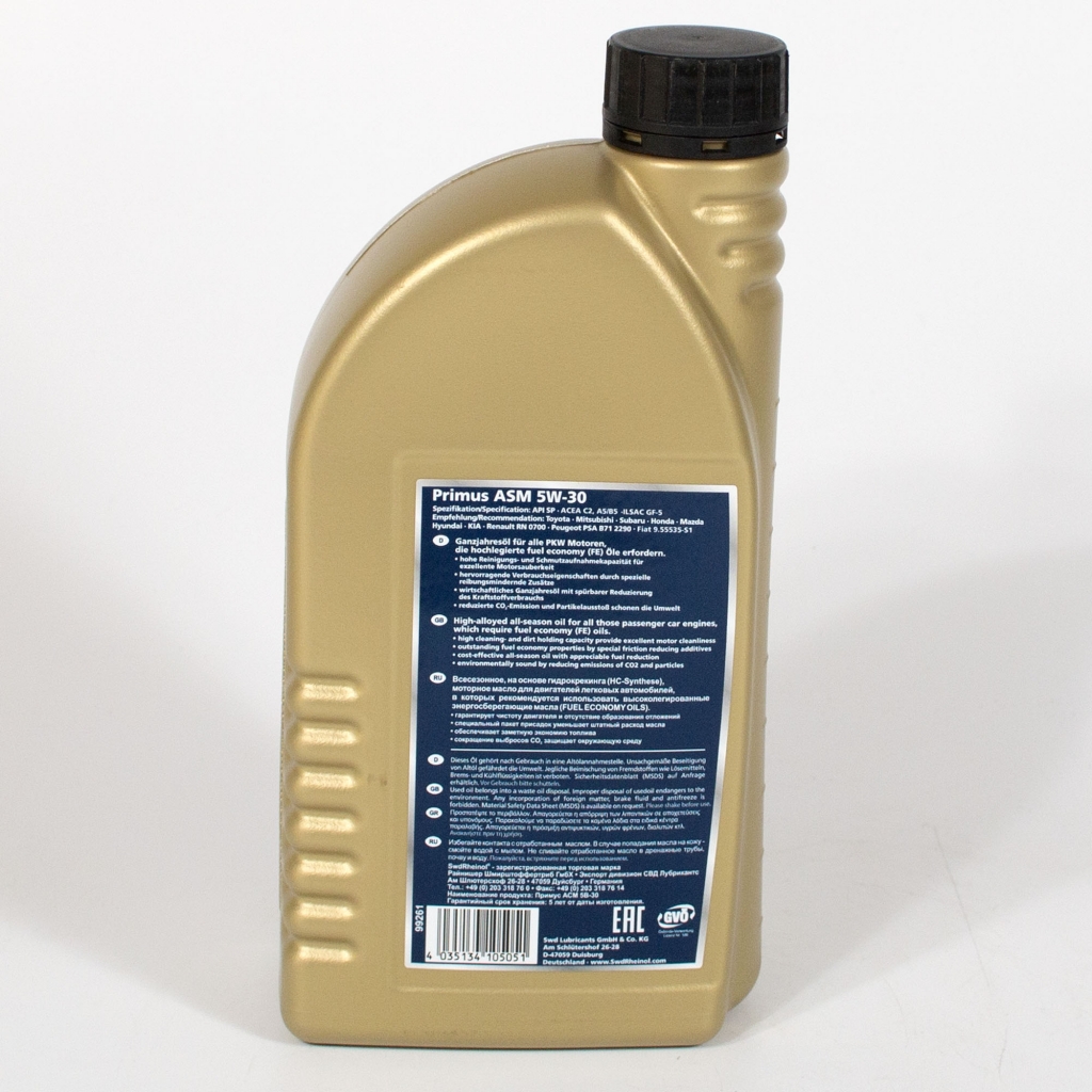 SwdRheinol Primus ASM 5W-30 - испытано в условиях самых экстремальных тепловых и механических нагрузок, которые могут возникнуть при эксплуатации двигателей современных автомобилей, для которых предписано использование масел "Fuel Economy Oil".