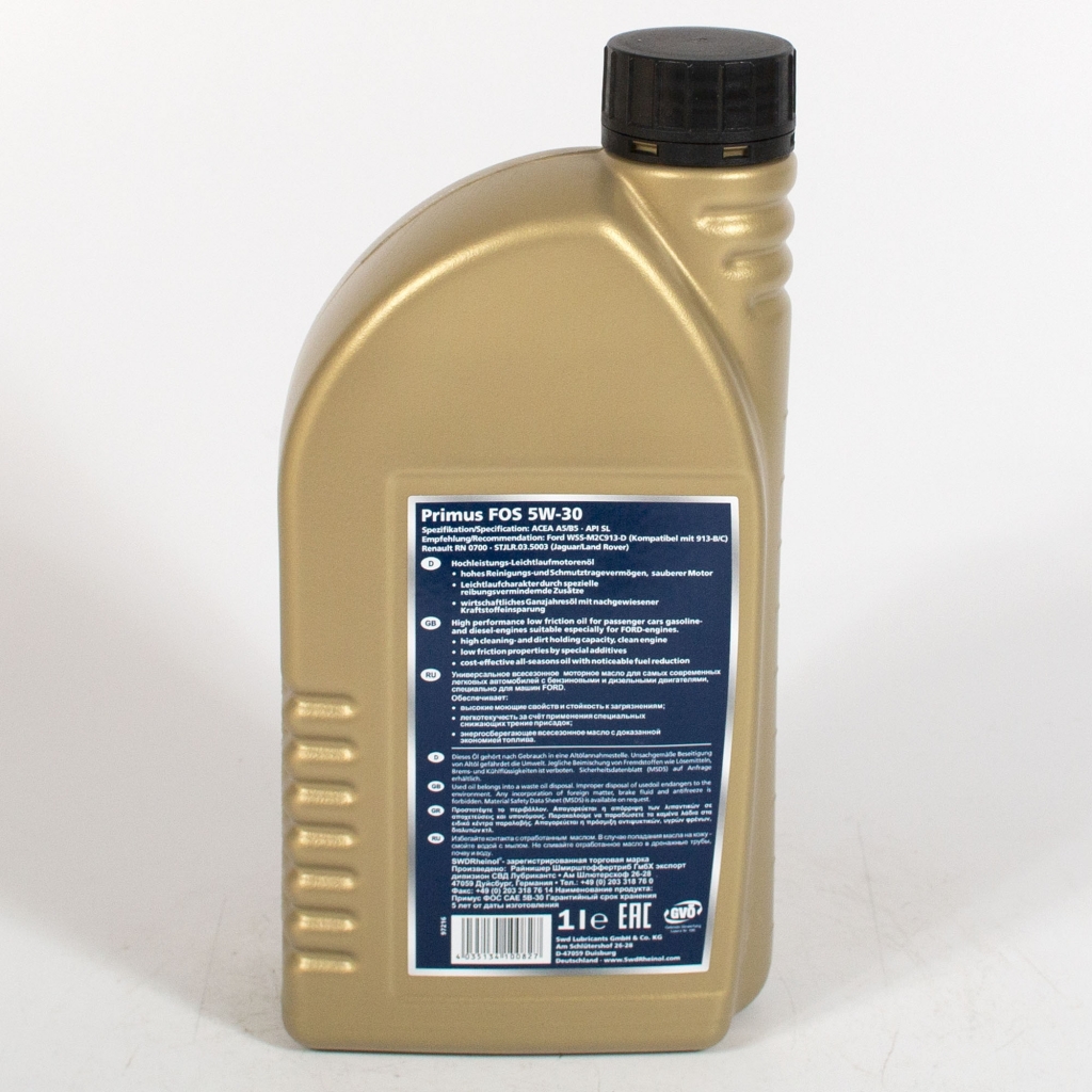 SwdRheinol Primus FOS 5W-30 - испытано в условиях самых экстремальных тепловых и механических нагрузок, которые могут возникнуть при эксплуатации двигателей современных автомобилей, для которых предписано использование масел "Fuel Economy Oil". Рекомендуется для двигателей автомобилей марки "FORD".