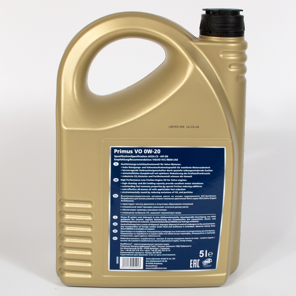 Главная / Моторные масла / Моторное масло SWD Rheinol Primus VO 0W-20 API SN C5, 5л