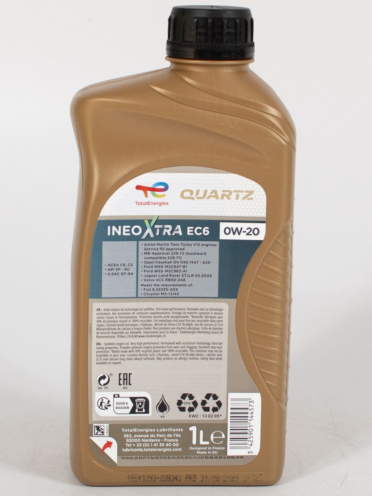 Total Quartz Ineo Xtra EC6 0W-20 — это современное синтетическое моторное масло, разработанное специально для бензиновых и дизельных двигателей легковых автомобилей. Масло для мотора Total 0-20 обладает уникальной формулой, которая обеспечивает отличную защиту двигателя и продлевает его срок службы.