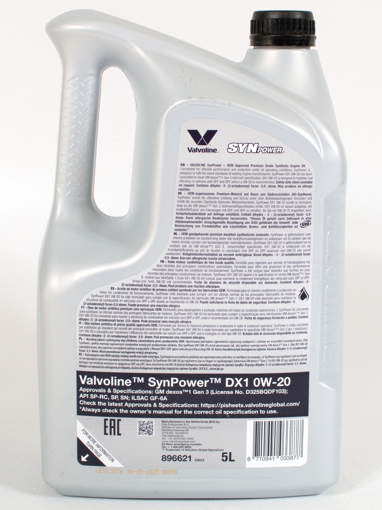 Главная / Моторные масла / Моторное масло Valvoline SYNPOWER DX1 0W-20, 5л