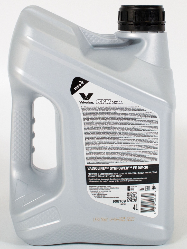 Моторное масло Valvoline SYNPOWER FE 0W-30, 4л