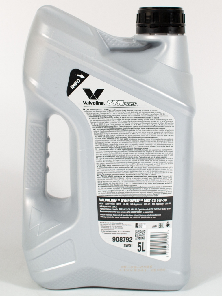 Главная / Моторные масла / Моторное масло Valvoline SYNPOWER MST C3 5W-30, 5л