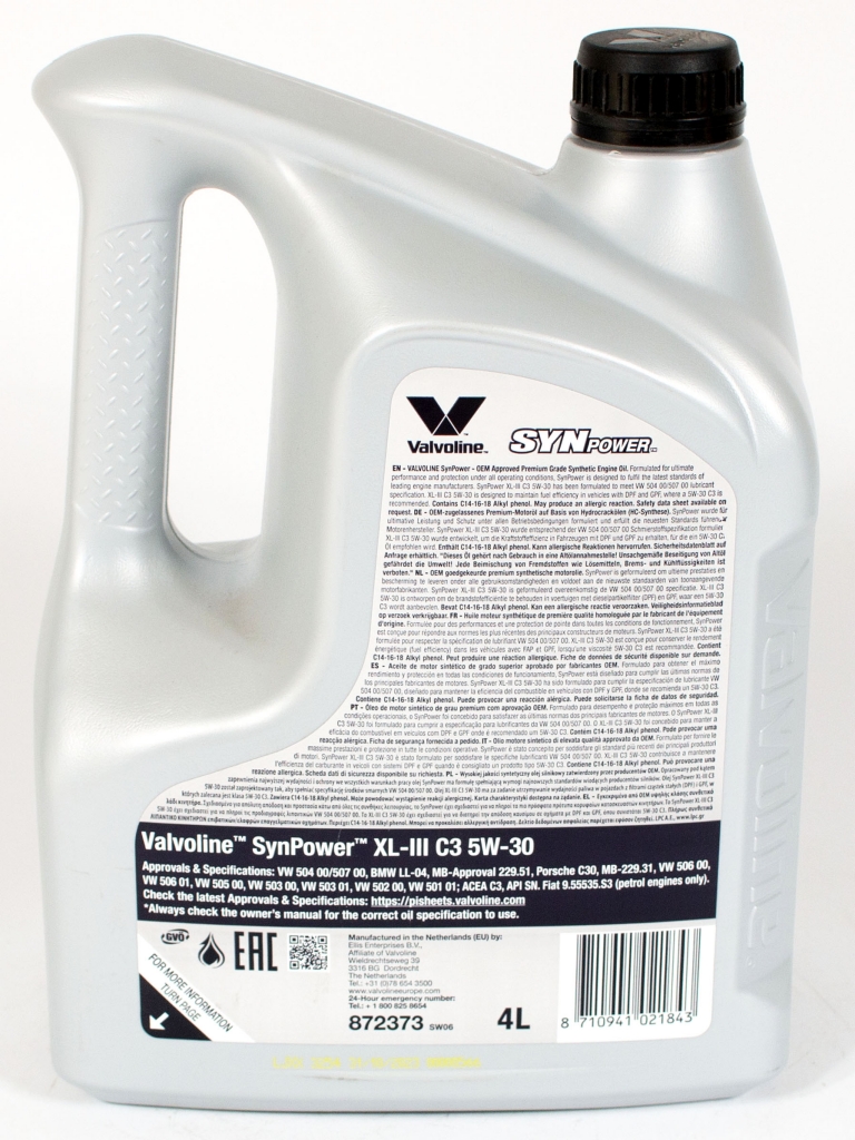 Главная / Моторные масла / Моторное масло Valvoline SYNPOWER XL-III C3 5W-30, 4л