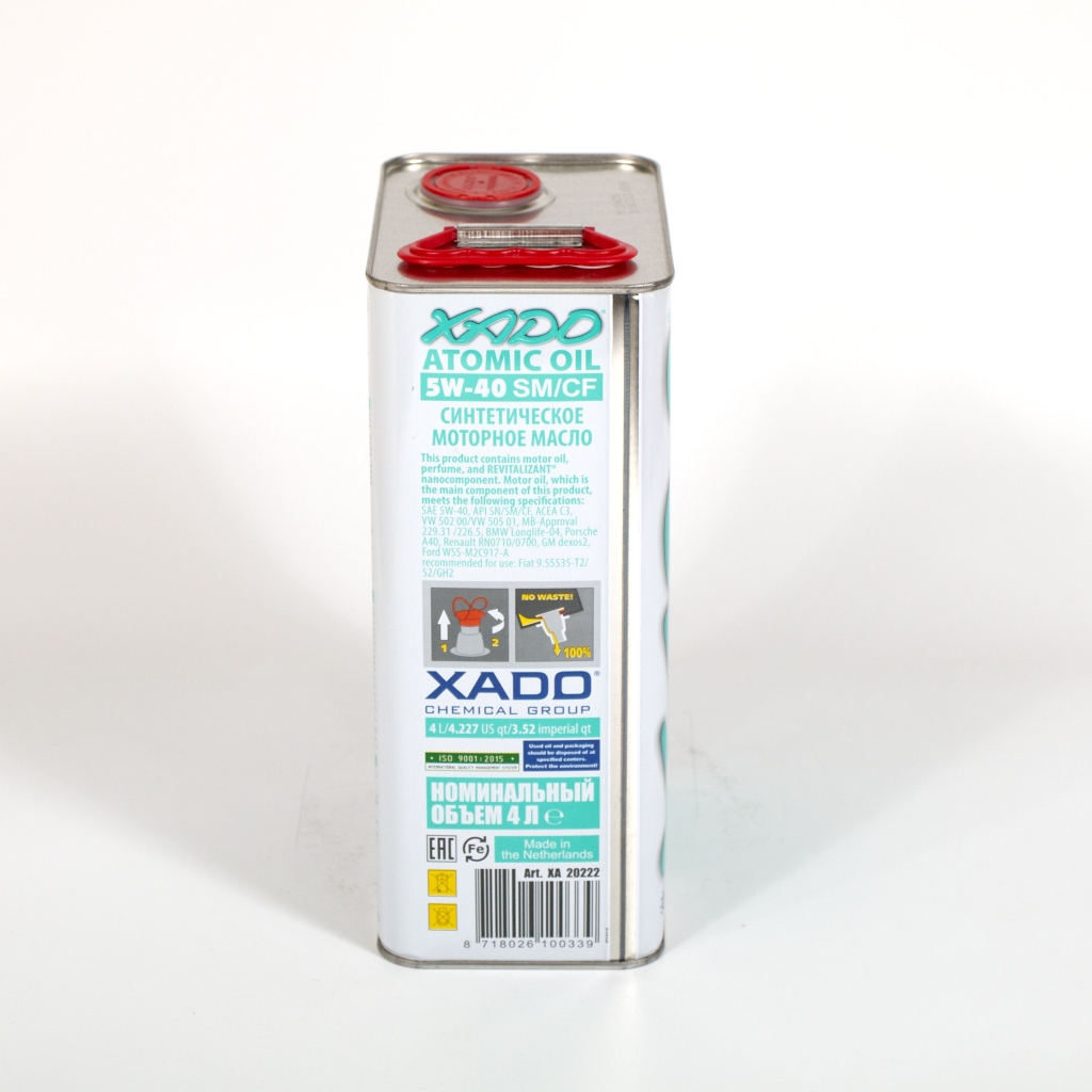 *Уникальность масел XADO заключается прежде всего в том, что они содержат инновационный нанокомпонент - атомарный ревитализант (AR). Именно атомарный ревитализант является мощным катализатором для роста защитного металлокерамического покрытия с высокими противоизносными свойствами и со способностью к саморегенерации! Благодаря ревитализанту, масла XADO надежно защищают двигатель, даже когда, в результате сверх нагрузок - постоянных режимов старт-стоп и «педали в полик», рвется маслянный клин! Это не под силу ни одному существующему маслу в мире!