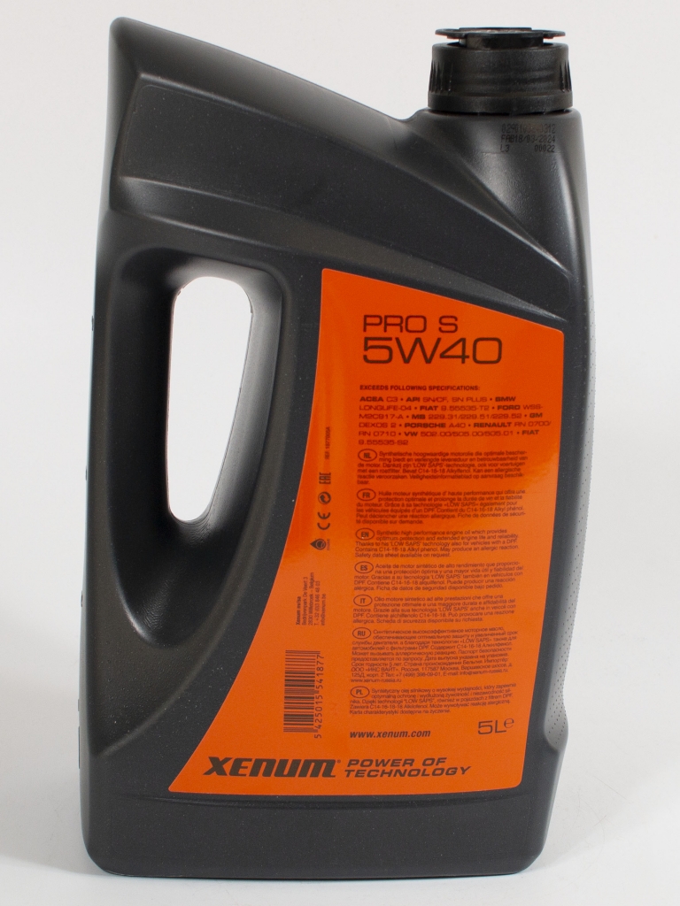 Главная / Моторные масла / Моторное масло XENUM PRO S 5W-40, 5л