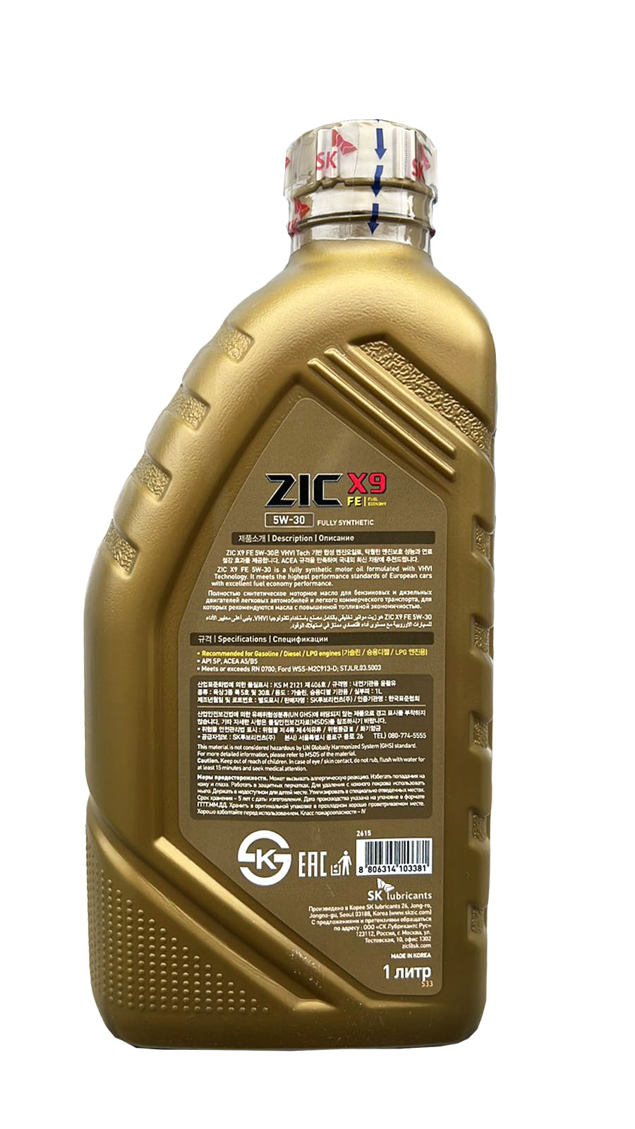 Моторное масло ZIC X9 FE 5W-30 SP A5/B5, 1л