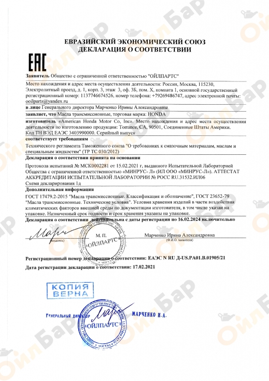 HONDA DPF II специальная гидравлическая жидкость для задних редукторов автомобилей HONDA.