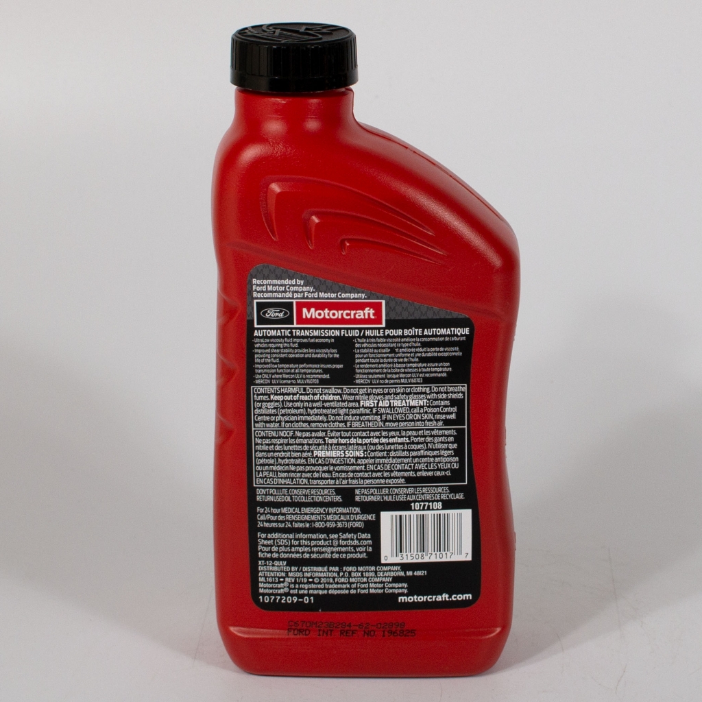 Motorcraft MERCON ULV — жидкость для автоматических трансмиссий премиум-класса, рекомендованная Ford Motor Company для использования в автомобилях Ford F-150 и Raptor с автоматической коробкой передач 10R80. Информацию по применению см. в руководстве по эксплуатации, руководстве по ремонту и таблицах трансмиссионных жидкостей.
