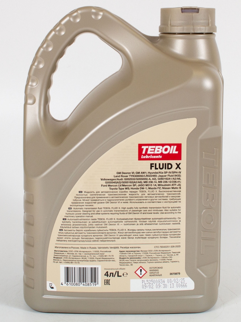 Трансмиссионное масло TEBOIL АКПП FLUID X, 4л