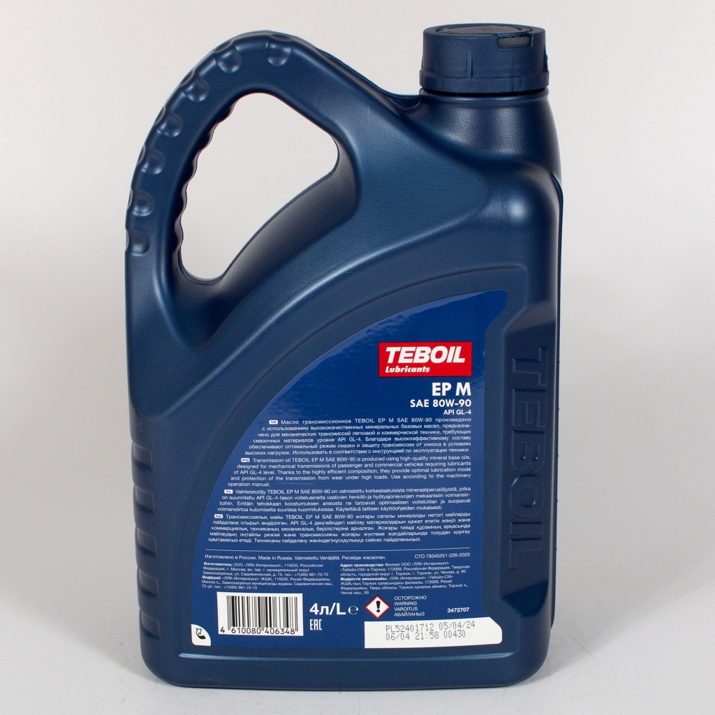 Главная / Трансмиссионные масла / Трансмиссионное масло TEBOIL EP M 80W-90 GL-4, 4л
